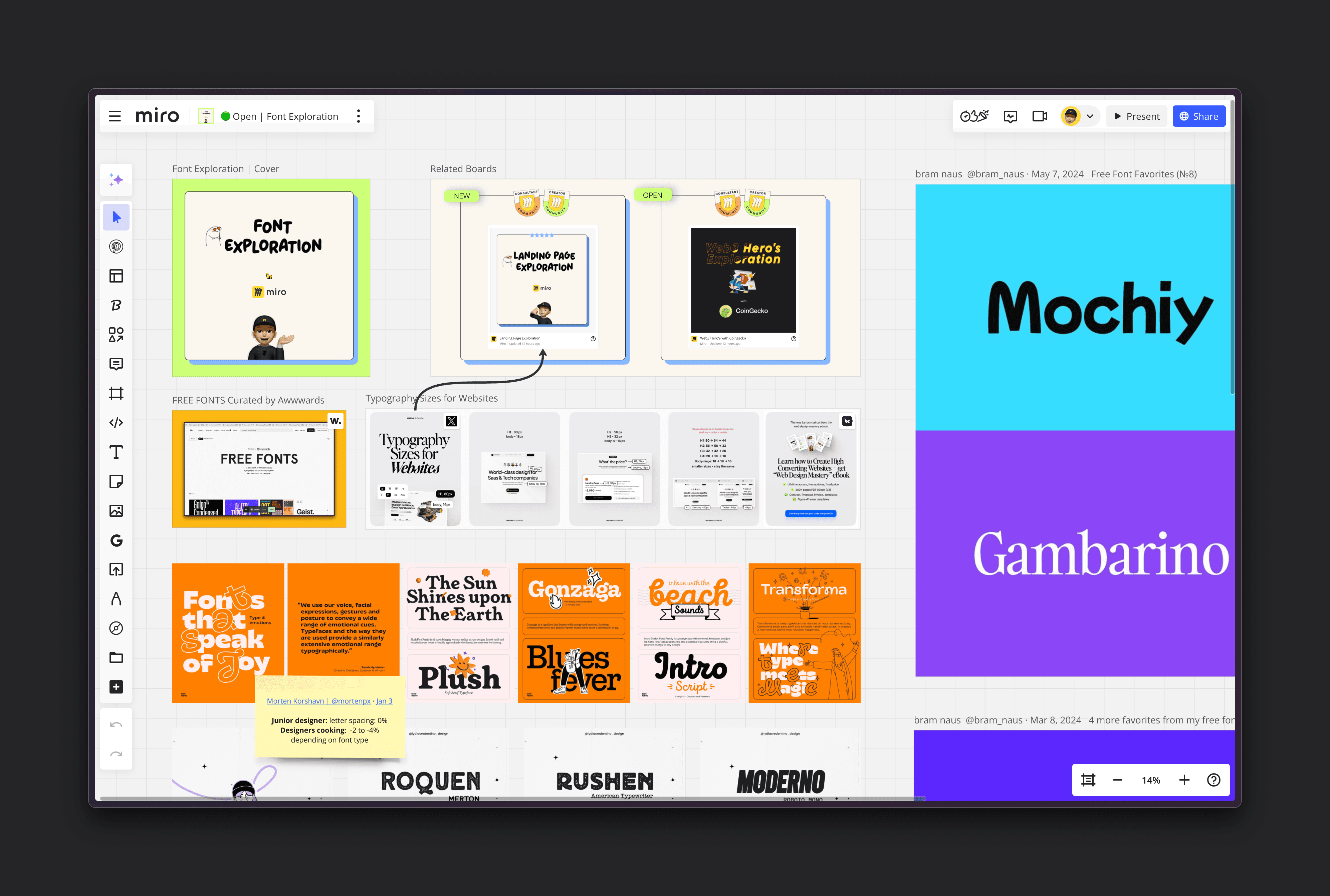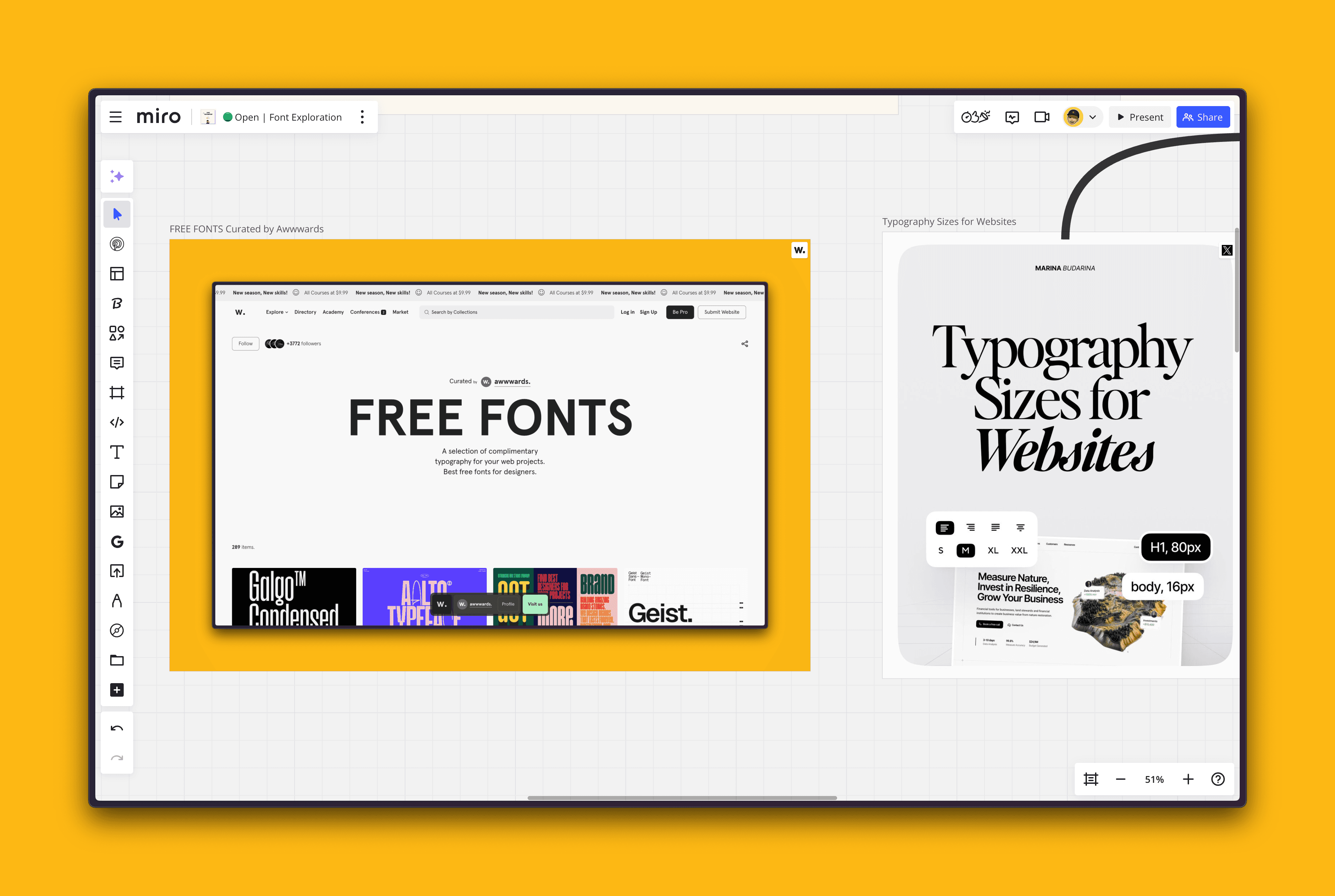 Experimenting with typography styles, pairings, and hierarchy to find the perfect typefaces for various design contexts.